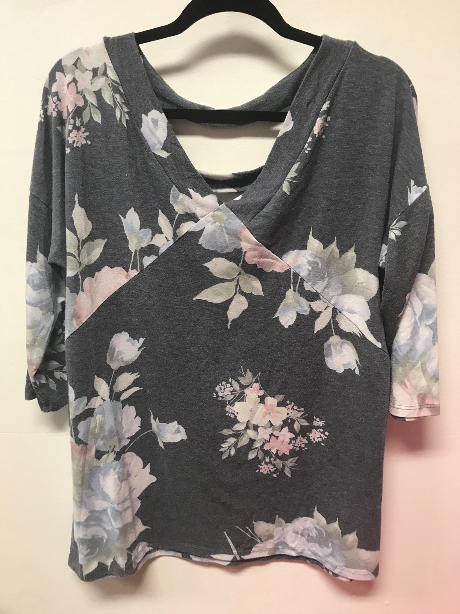 Grey Floral 3/4 Sleeve-L